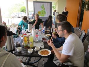Es wurde wieder kräftig und munter morgens, an einem spätsommerlichen Samstag, angepackt. Zum Mittag gab es eine Führung durch die Räumlichkeiten im Hospitz mit vielen Infos zur Entstehungsgeschichte. Im Anschluss fand der Ausklang beim Waffelbacken zusammen mit den Gästen statt.